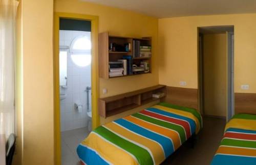 Las habitaciones de la Residencia Universitaria San Agustín presentan suelos de baldosas y una decoración en colores brillantes. Todas incluyen un cuarto de baño privado.